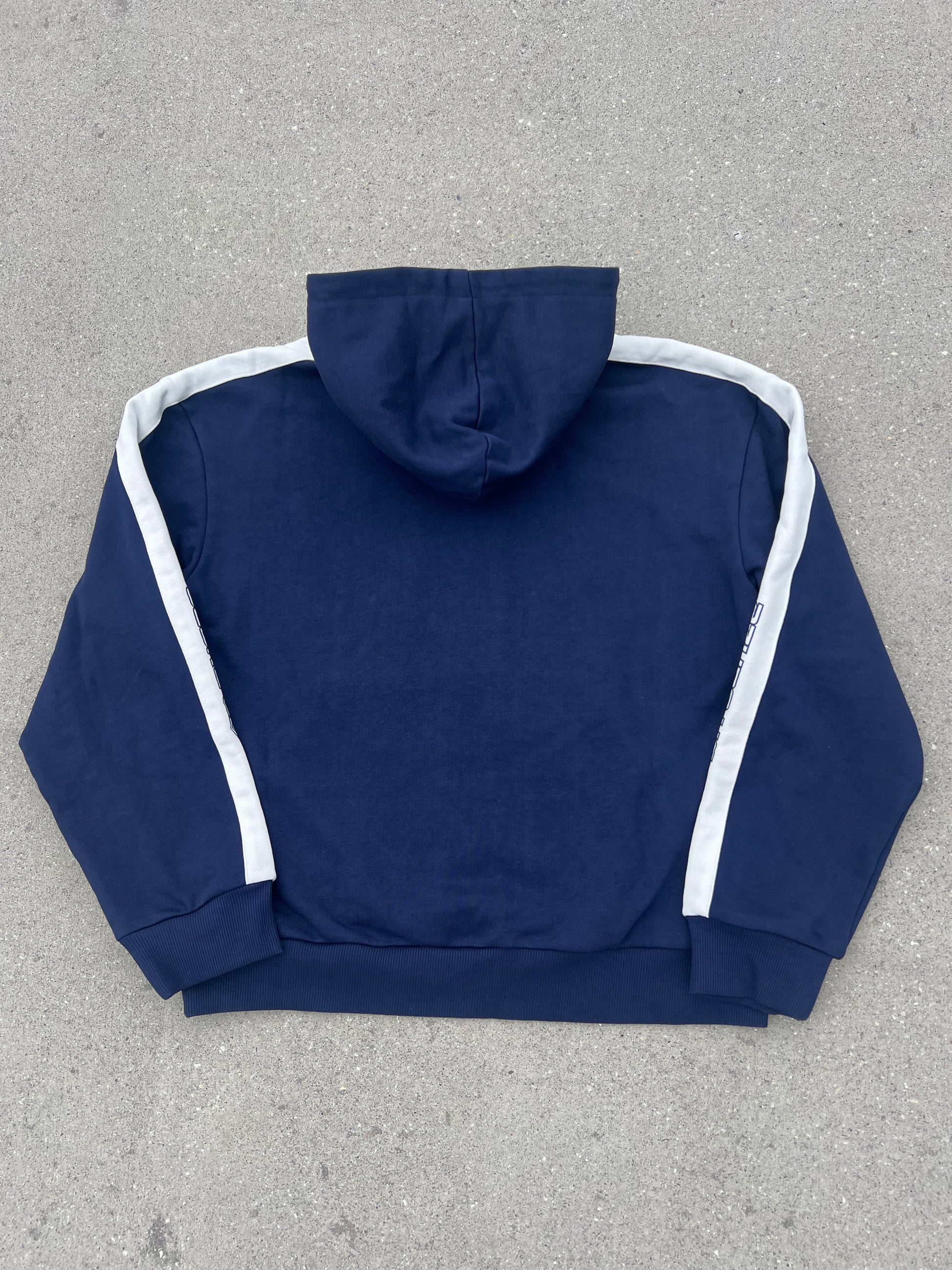 400gsm 100% cotton heavyweight hoodie. Embroidered front graphic and screen printed sleeve graphic.